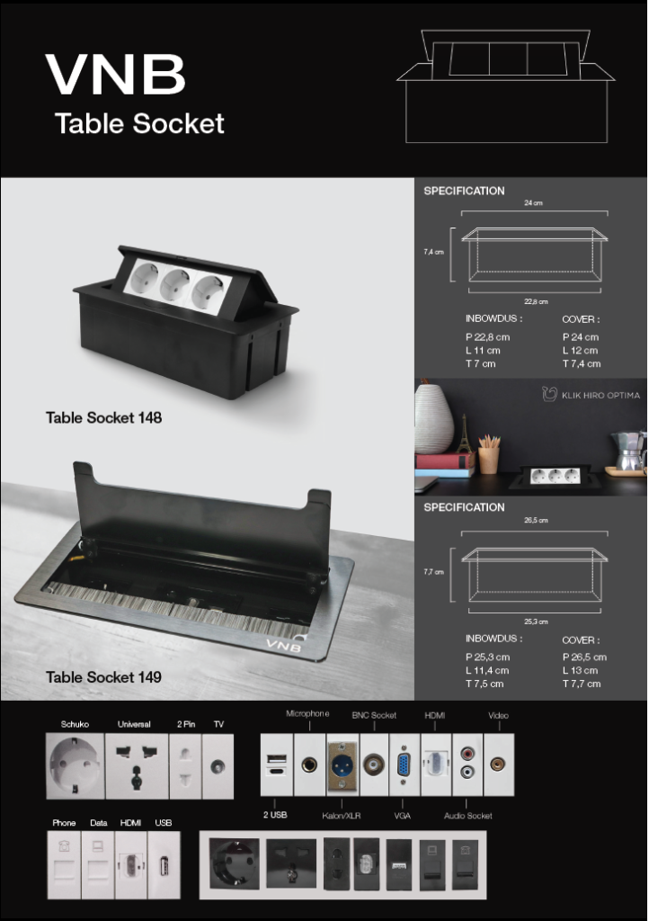 Sehubungan dengan pengenalan produk floor socket VNB, berikut keunggulan table socket VNB (NEW DESIGN)